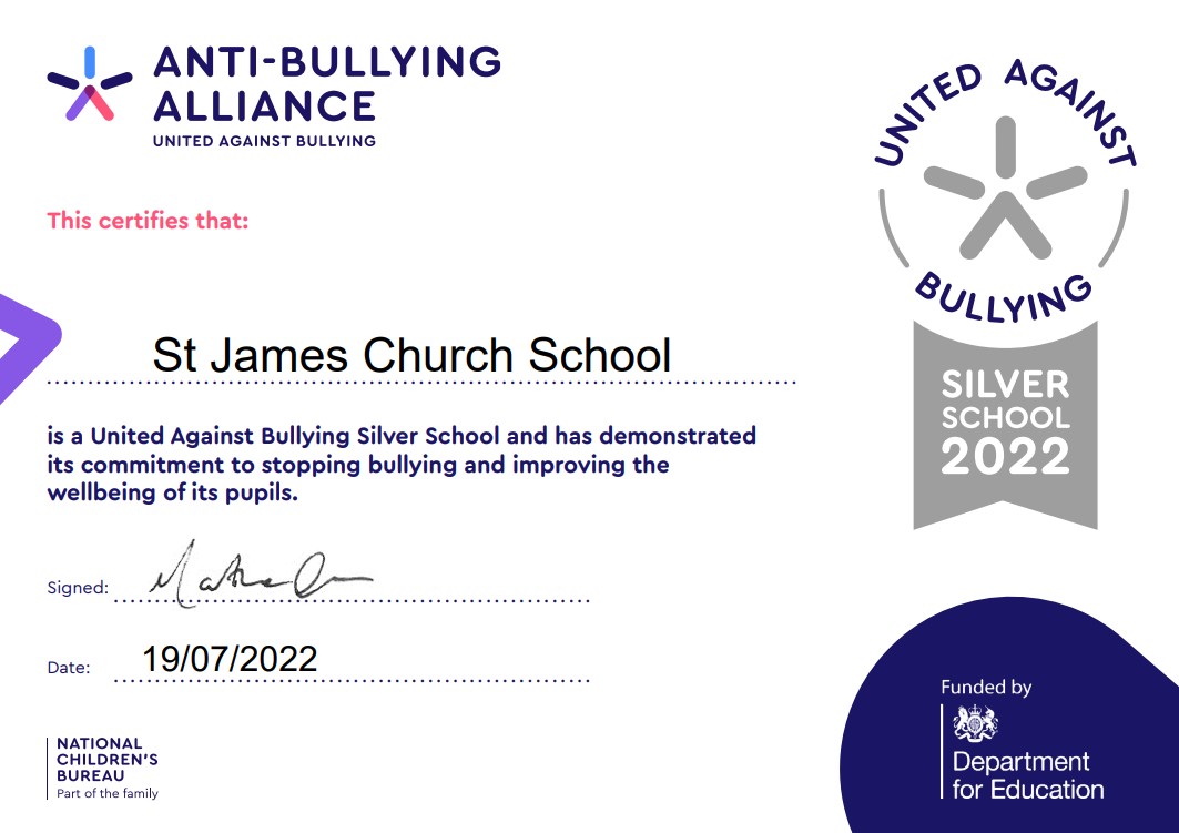 In July 2022 we were awarded the Silver United Against Bullying Award recognising our commitment to reducing bullying and giving children the skills to stand against it.