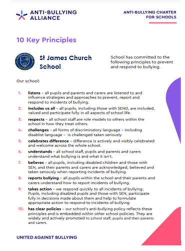 Everyone at St James Church School has the right to feel welcome, secure and happy.