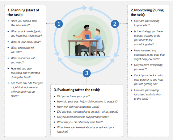 We use this tool to support us as teachers by providing questions that encourage pupils to think metacognitively about their learning. This might be done by modelling the questions to the children or ask them directly.