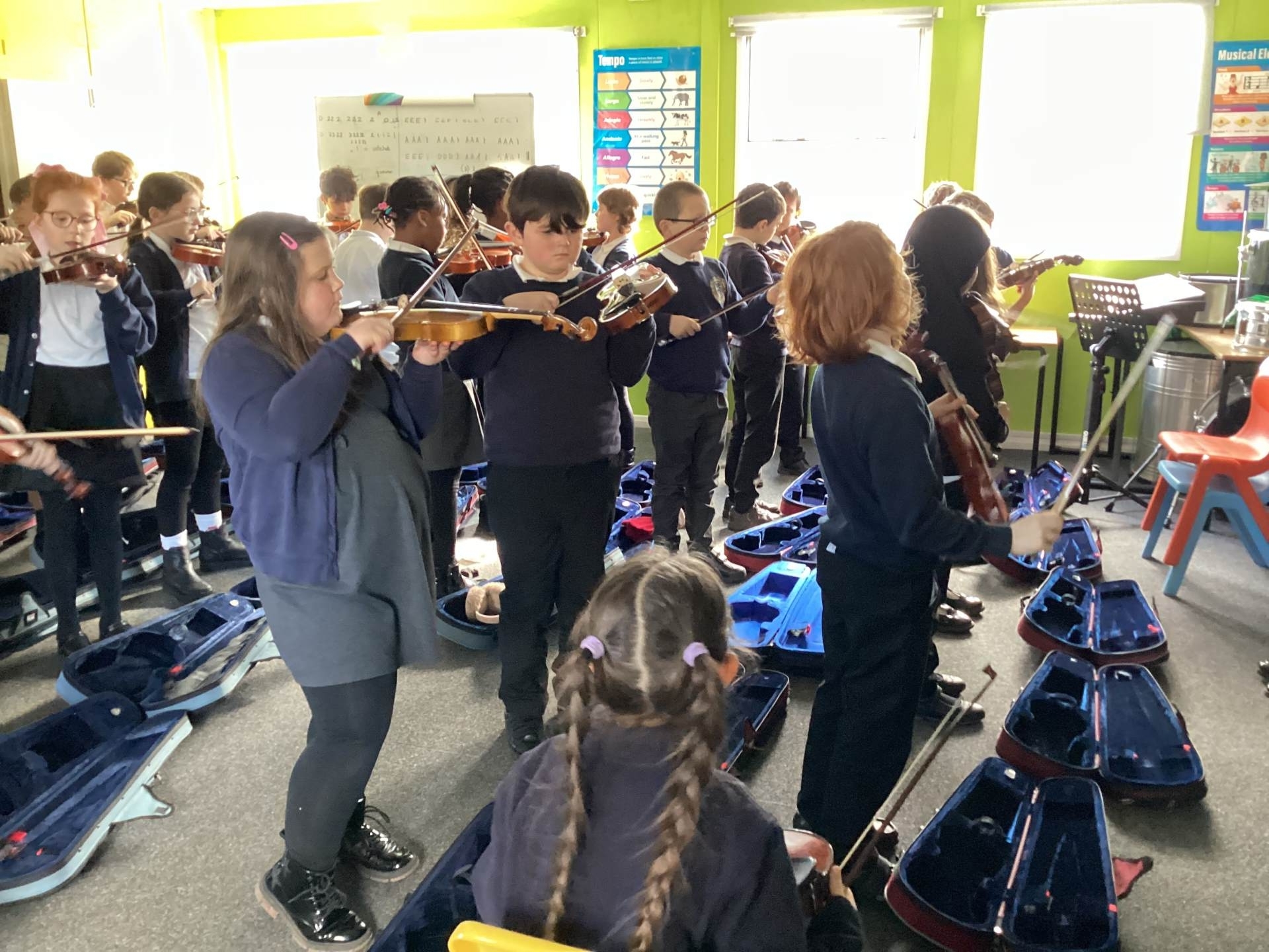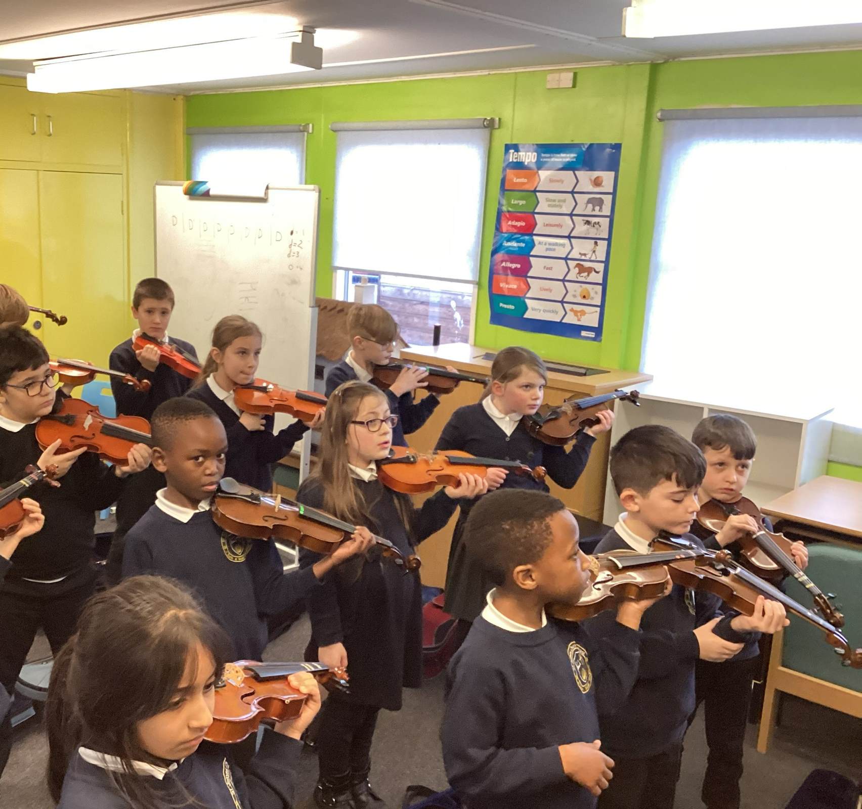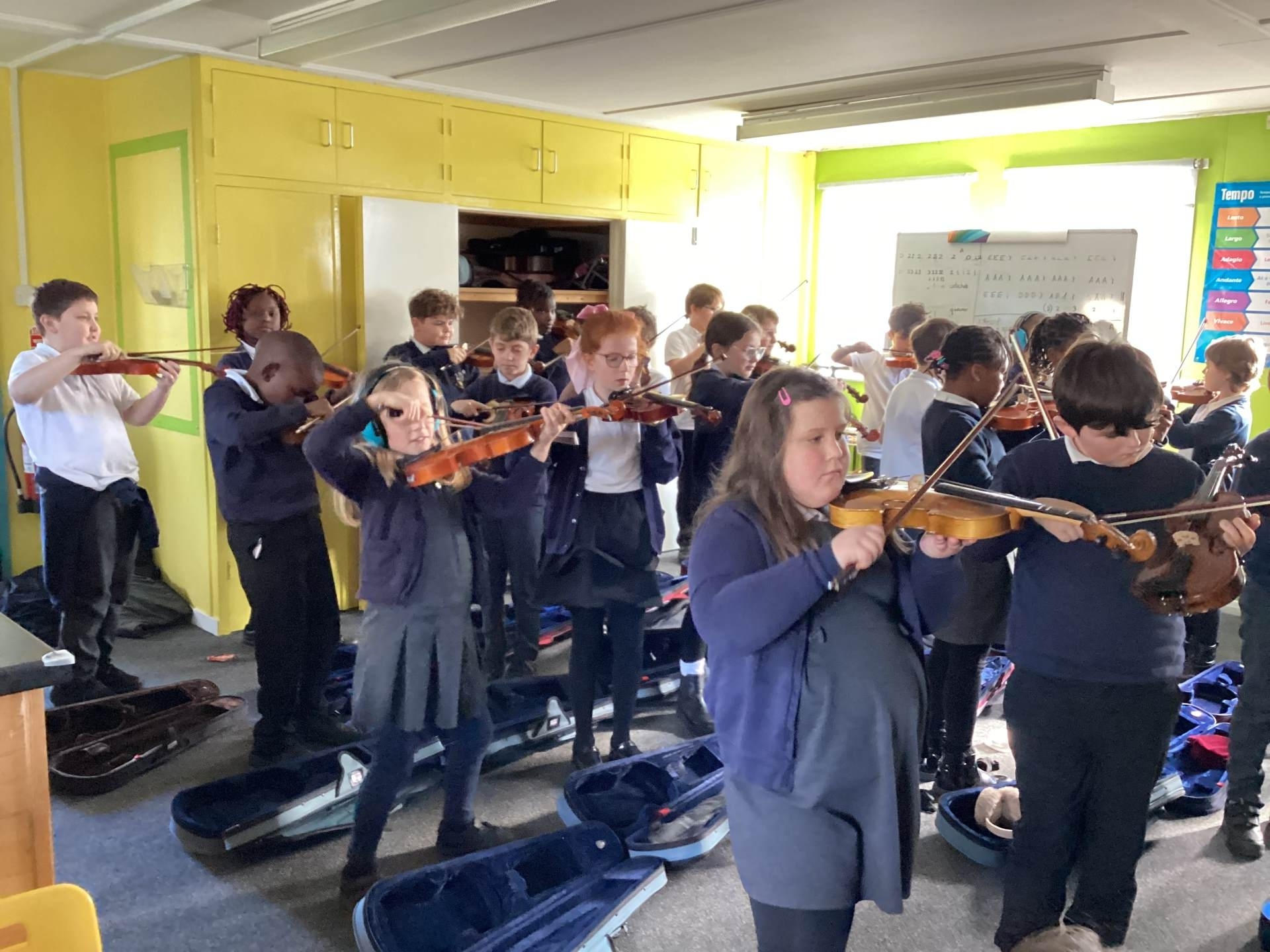 We provide children in KS2 with the opportunity to learn the Violin, ukulele or guitar through Somerset Music teachers on a weekly basis for a small charge. They can have individual, paired or group lessons during the school day.