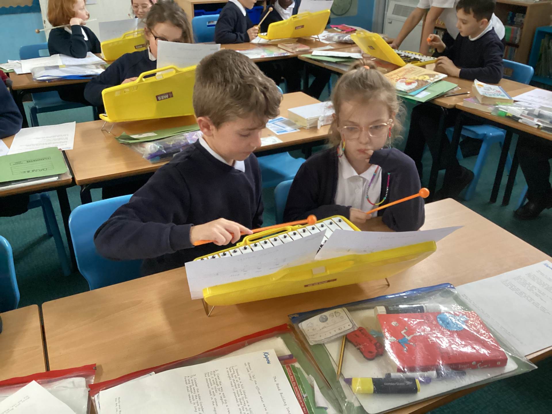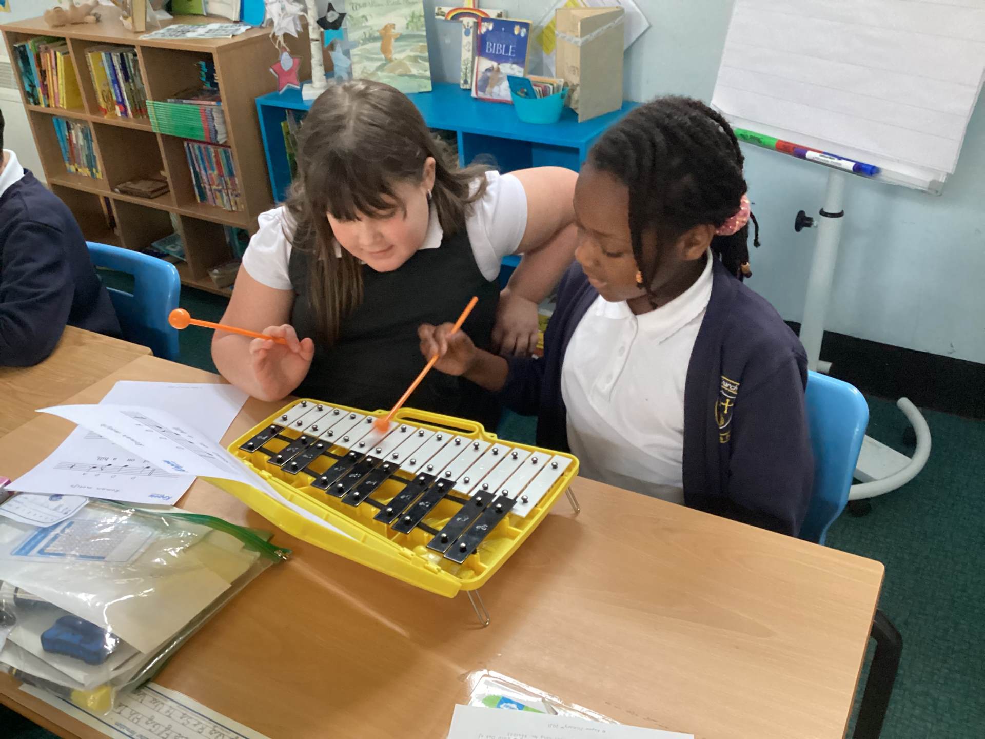 Children are actively involved in using and developing their own unique singing voices, using body percussion, whole body actions and handling and playing school instruments. Through a range of whole class, group and individual activities, the children have opportunities to explore sounds, listen, compose and perform.