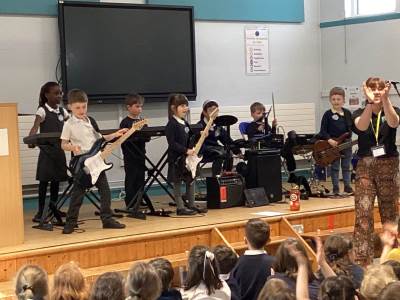Rocksteady, in-school band lessons are also a perfect opportunity for children throughout the school to learn new skills, develop friendships through music and enjoy performing some of their favourite songs.