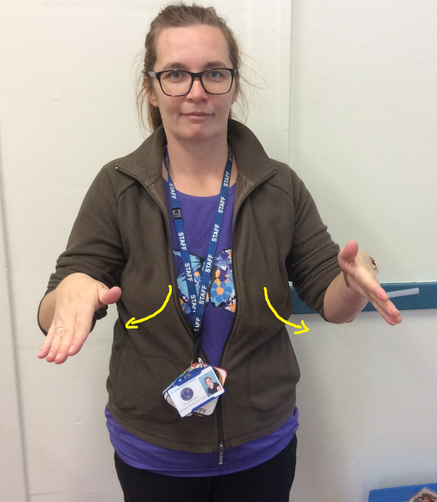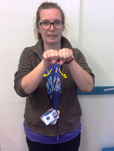 HELP: Use lower hand to lift upper hand upwardsSITTING: Move both hands downwards