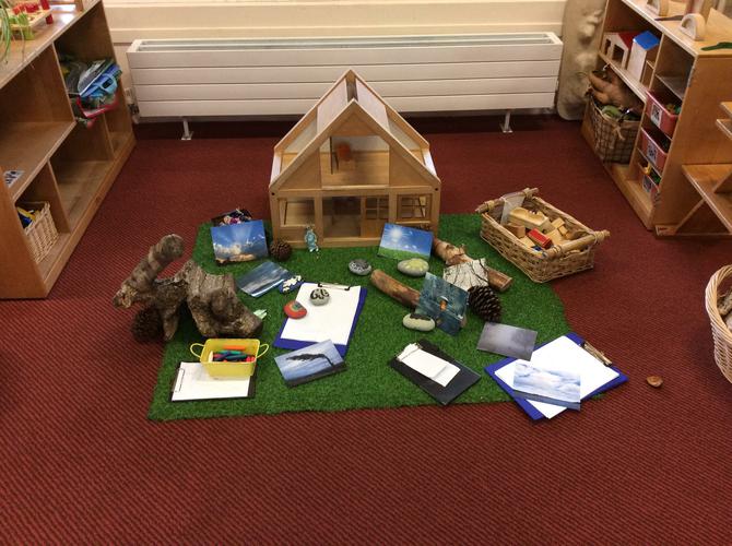 We also take a trip to Forest School every week. Forest School is a great way of learning outside, whether through drawing, collecting, climbing, being imaginative or making relationships.