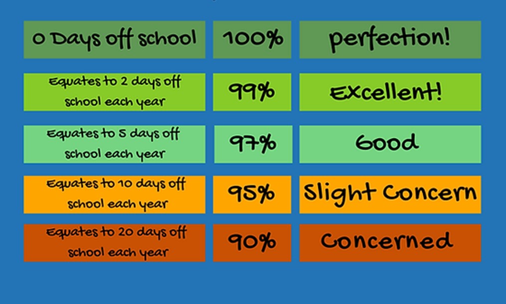 Regular attendance at school is essential to each child’s academic success and life-chances. Research links attendance with achievement, indicating that even occasional broken weeks can have a negative effect. We believe that the most important factor in promoting good attendance is the development of positive attitudes towards school. In promoting good attendance, it is also hoped that this will lead to the development of habits of good attendance and punctuality for the future. We expect all children on roll to attend every day, when the school is in session, as long as they are fit and healthy enough to do so. We will also make the best provision we can for those children who, for whatever reason, are prevented from coming to school.
