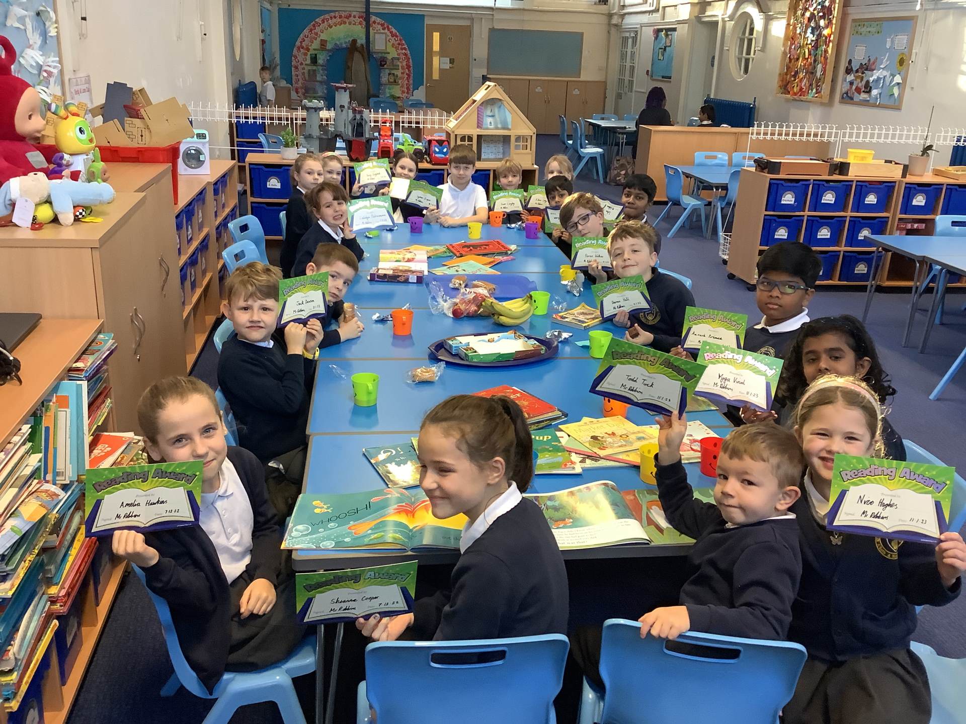 On Wednesdays, all class teachers choose a child who has impressed them with their reading skills. This child comes to have a celebratory breakfast with Mr Robbins and they take home our special reading certificates.